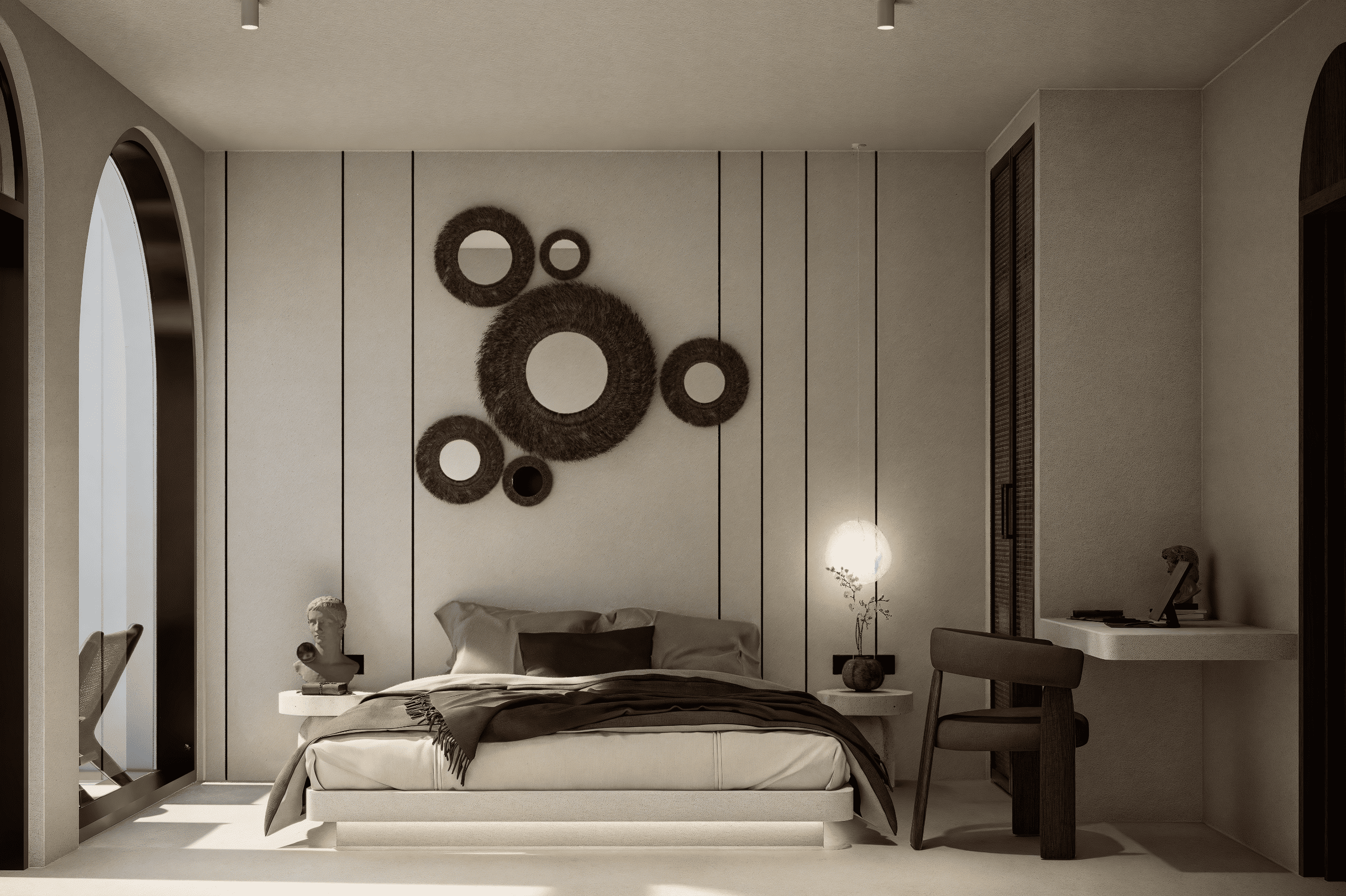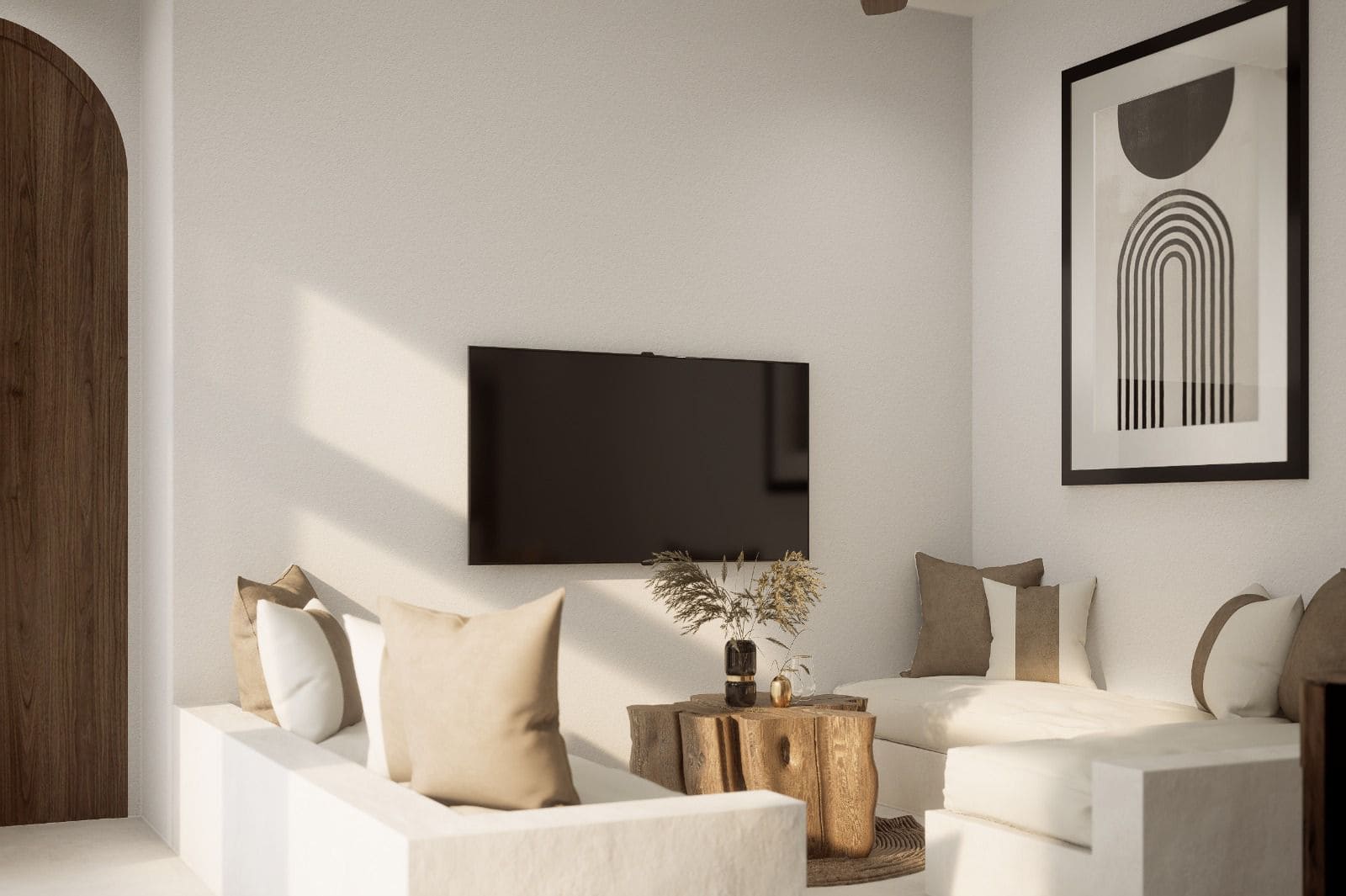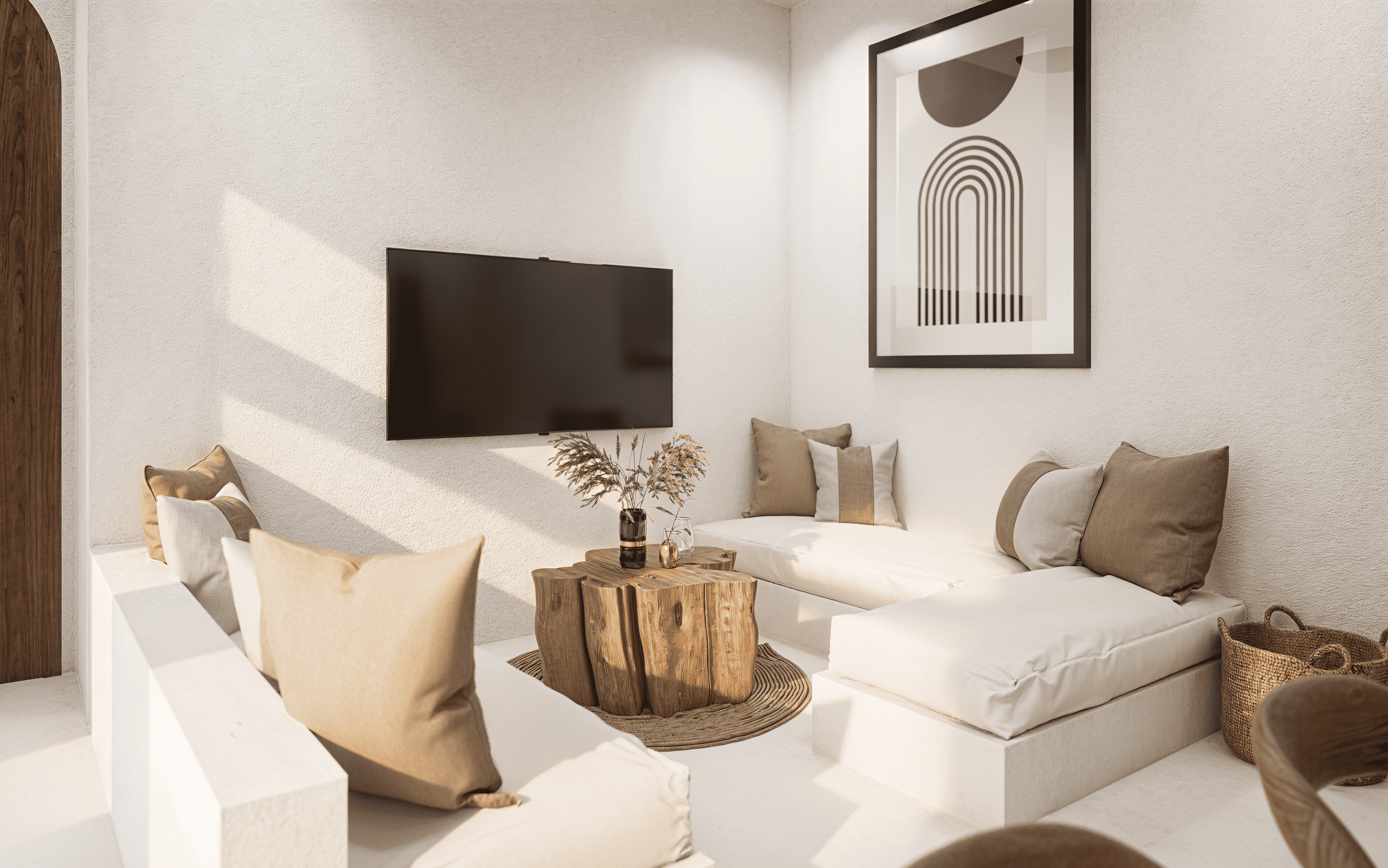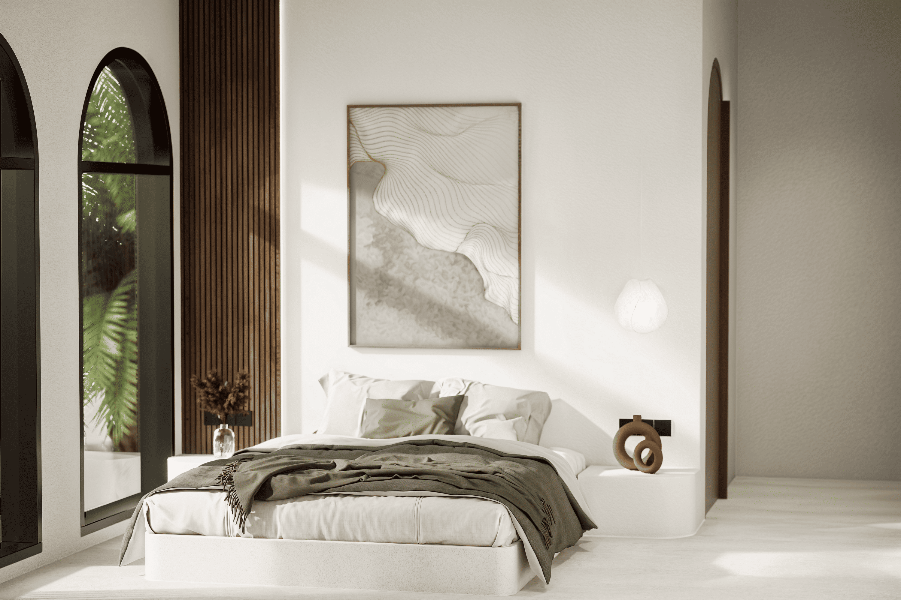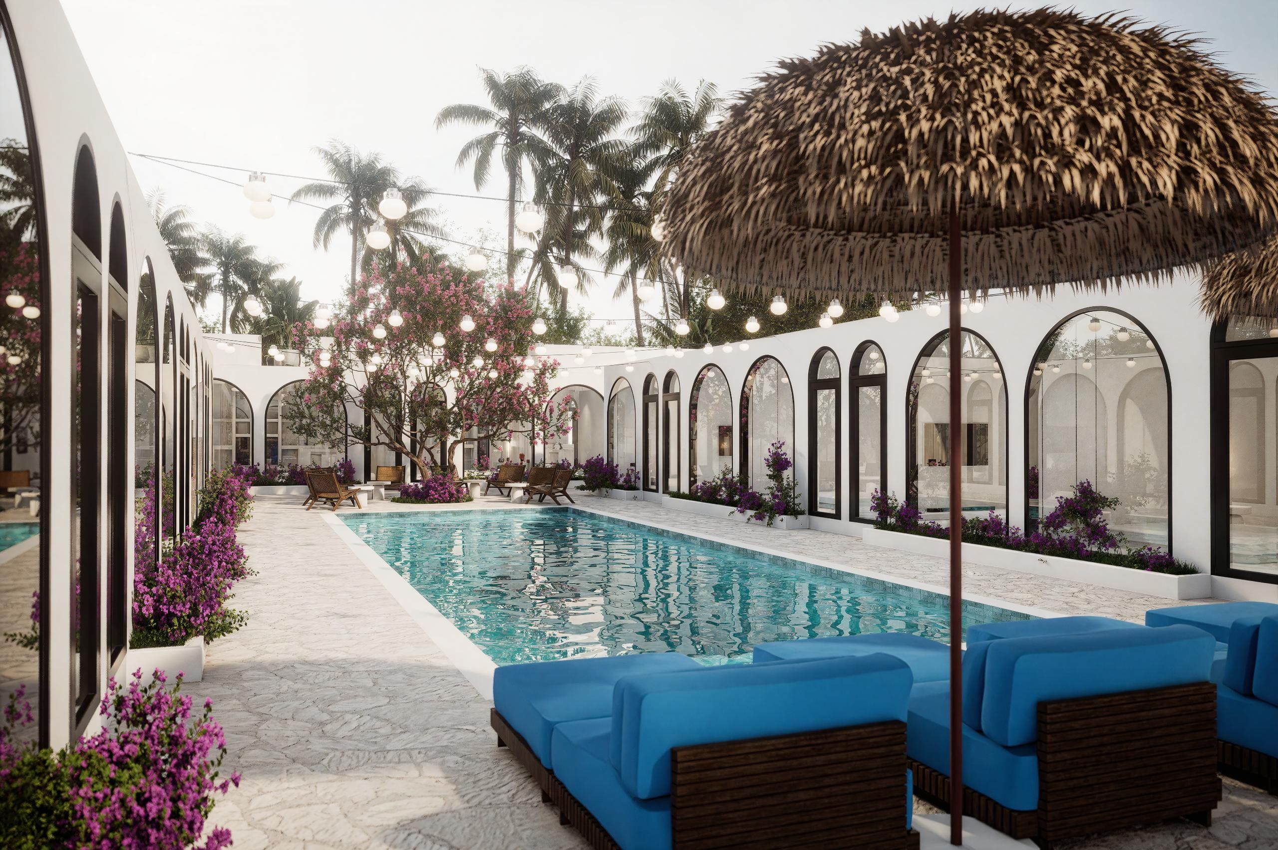 Белоснежные фасады, арки и пропорции в духе Санторини. Чистая геометрия, панорамные руфтопы, гармония света и пространства.