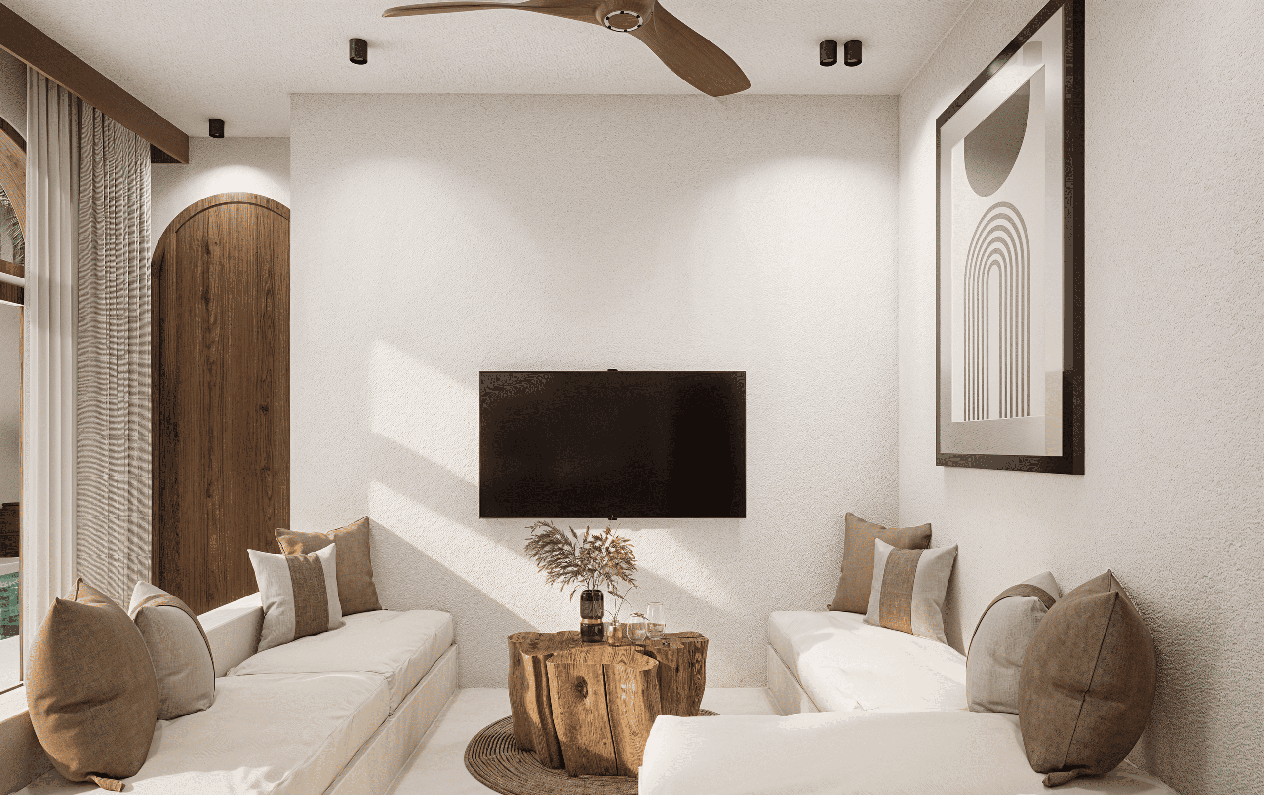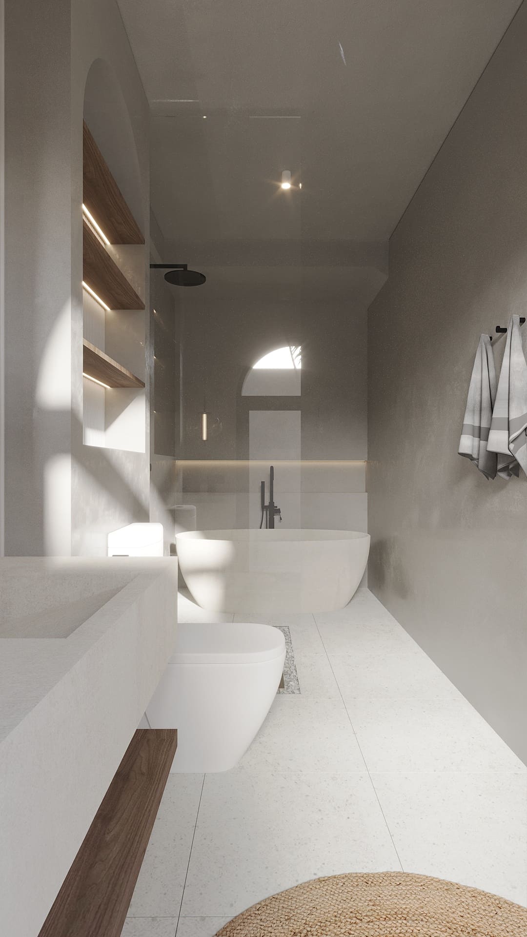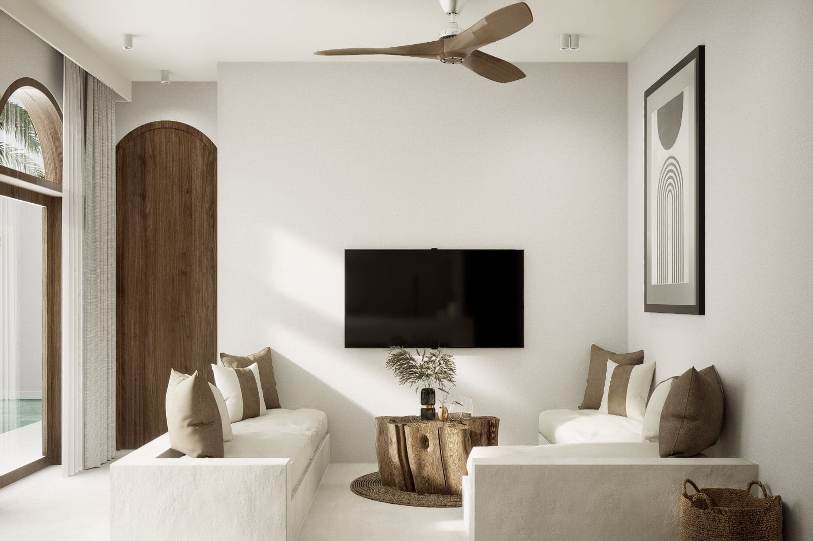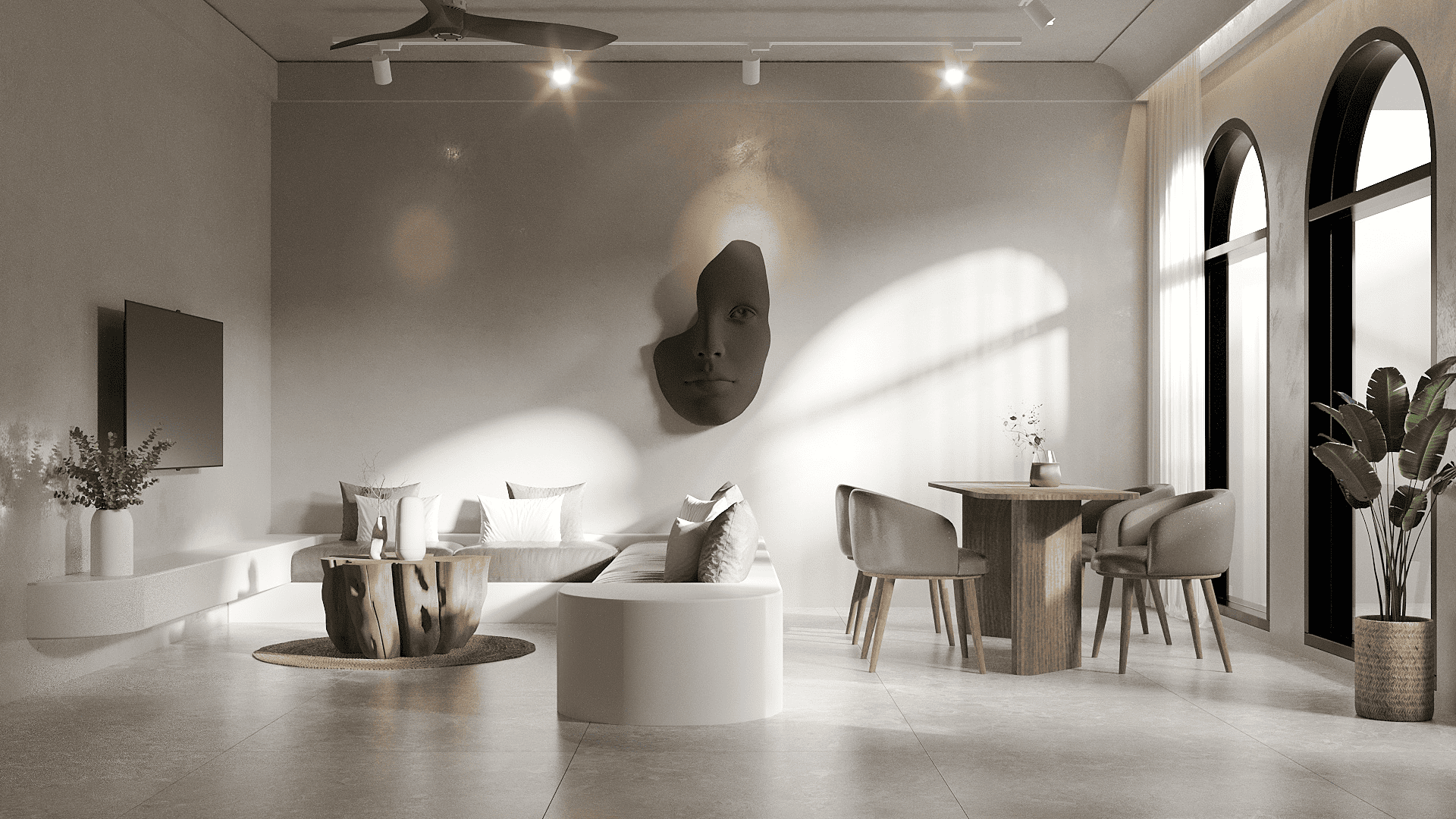 Белоснежные фасады, арки и пропорции в духе Санторини. Чистая геометрия, панорамные руфтопы, гармония света и пространства.