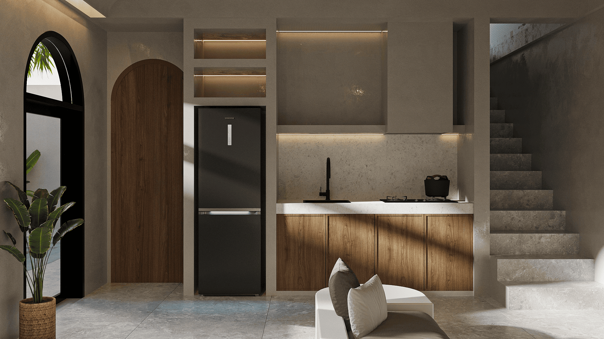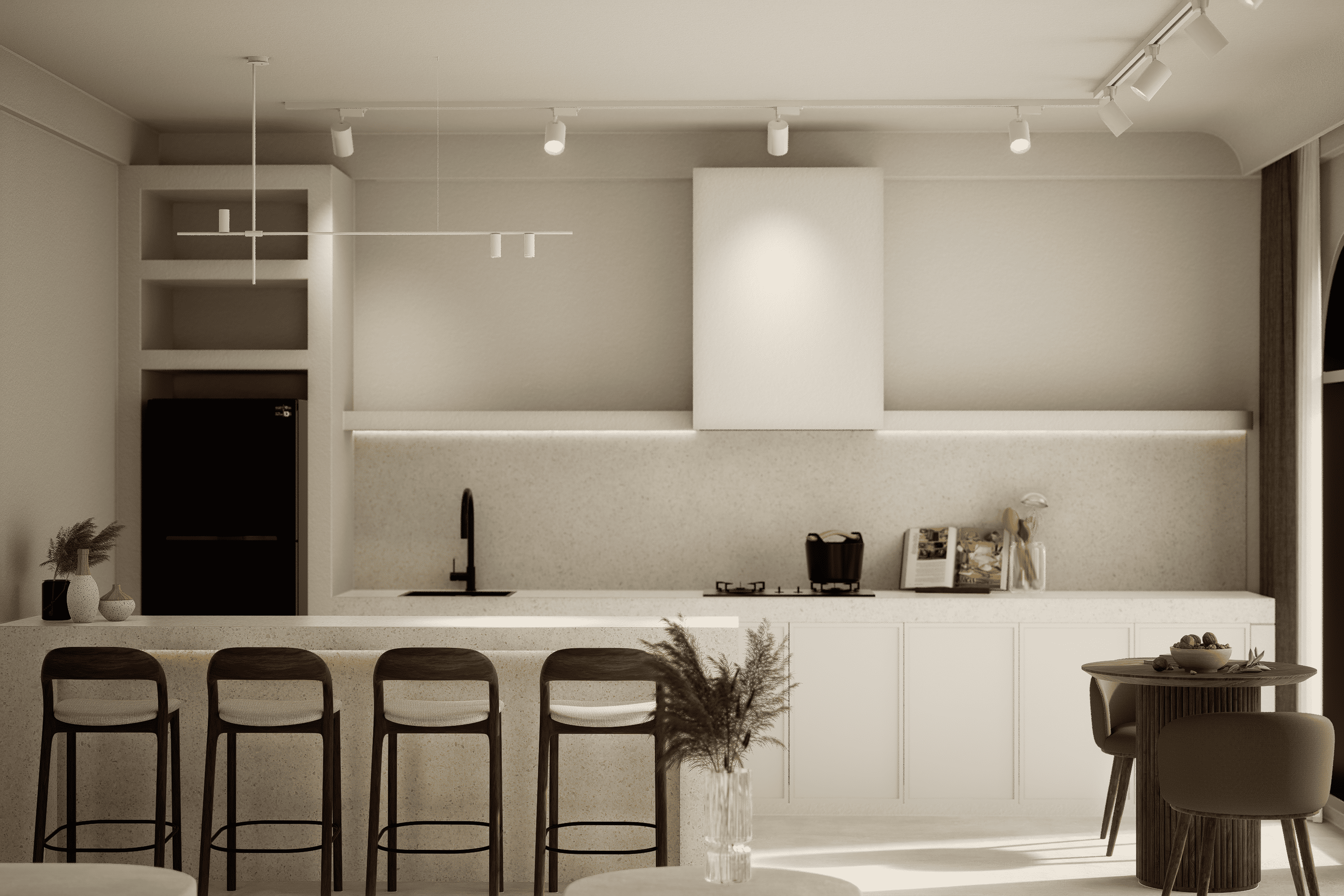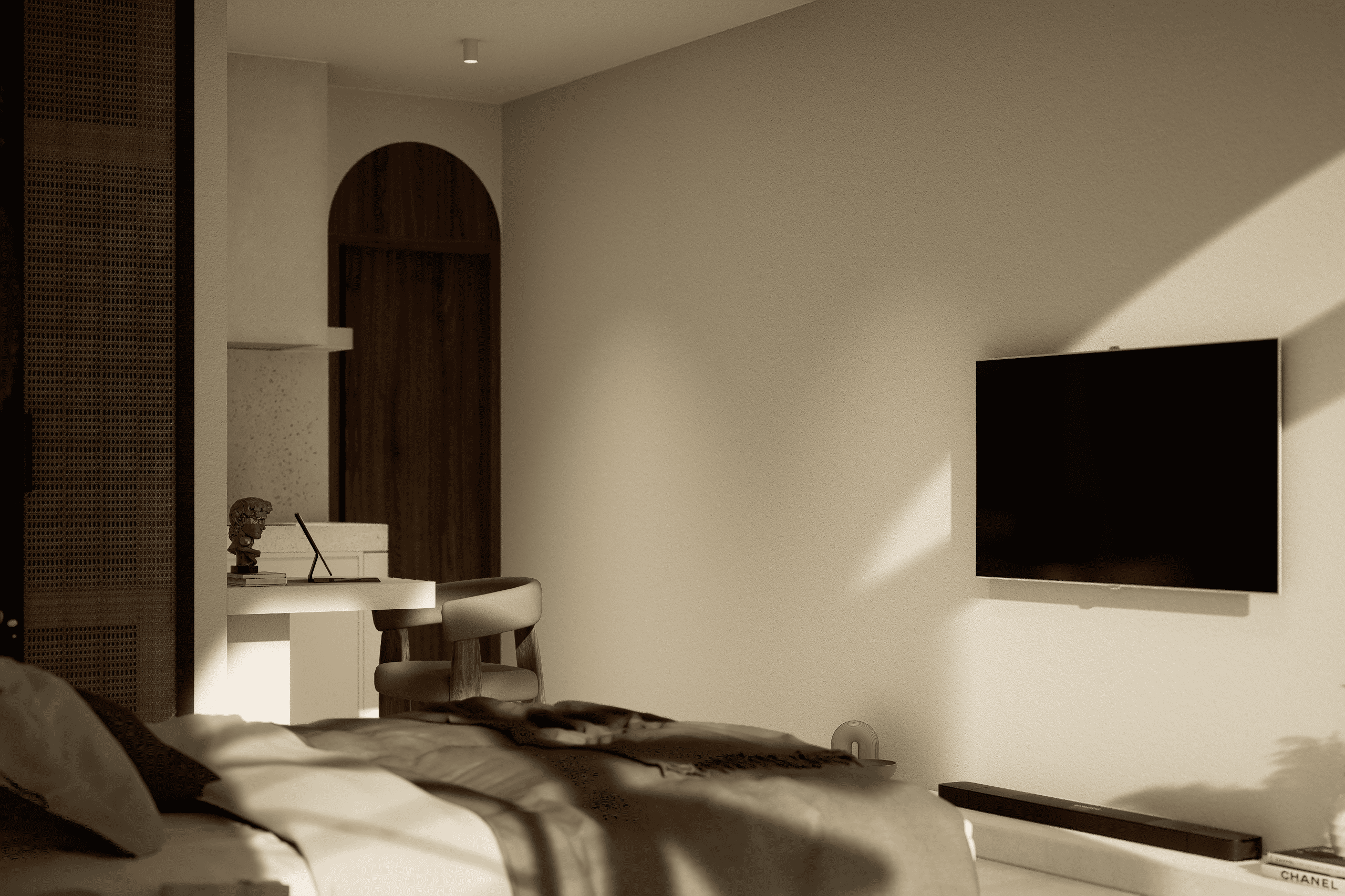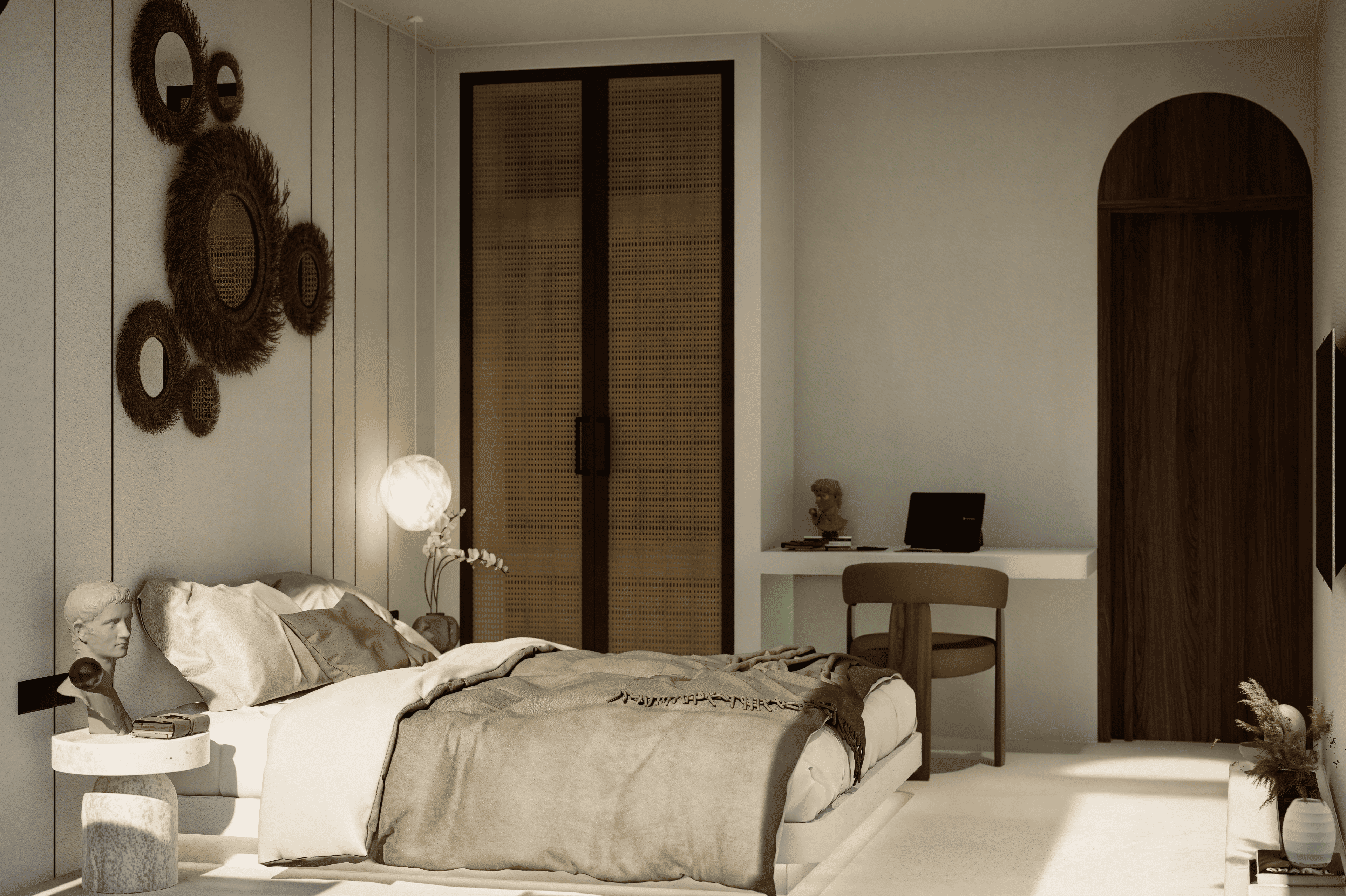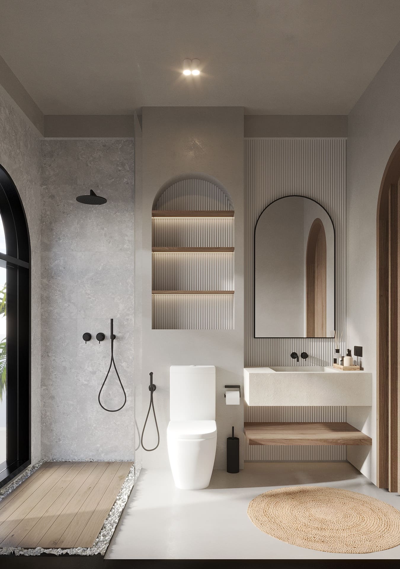 Белоснежные фасады, арки и пропорции в духе Санторини. Чистая геометрия, панорамные руфтопы, гармония света и пространства.