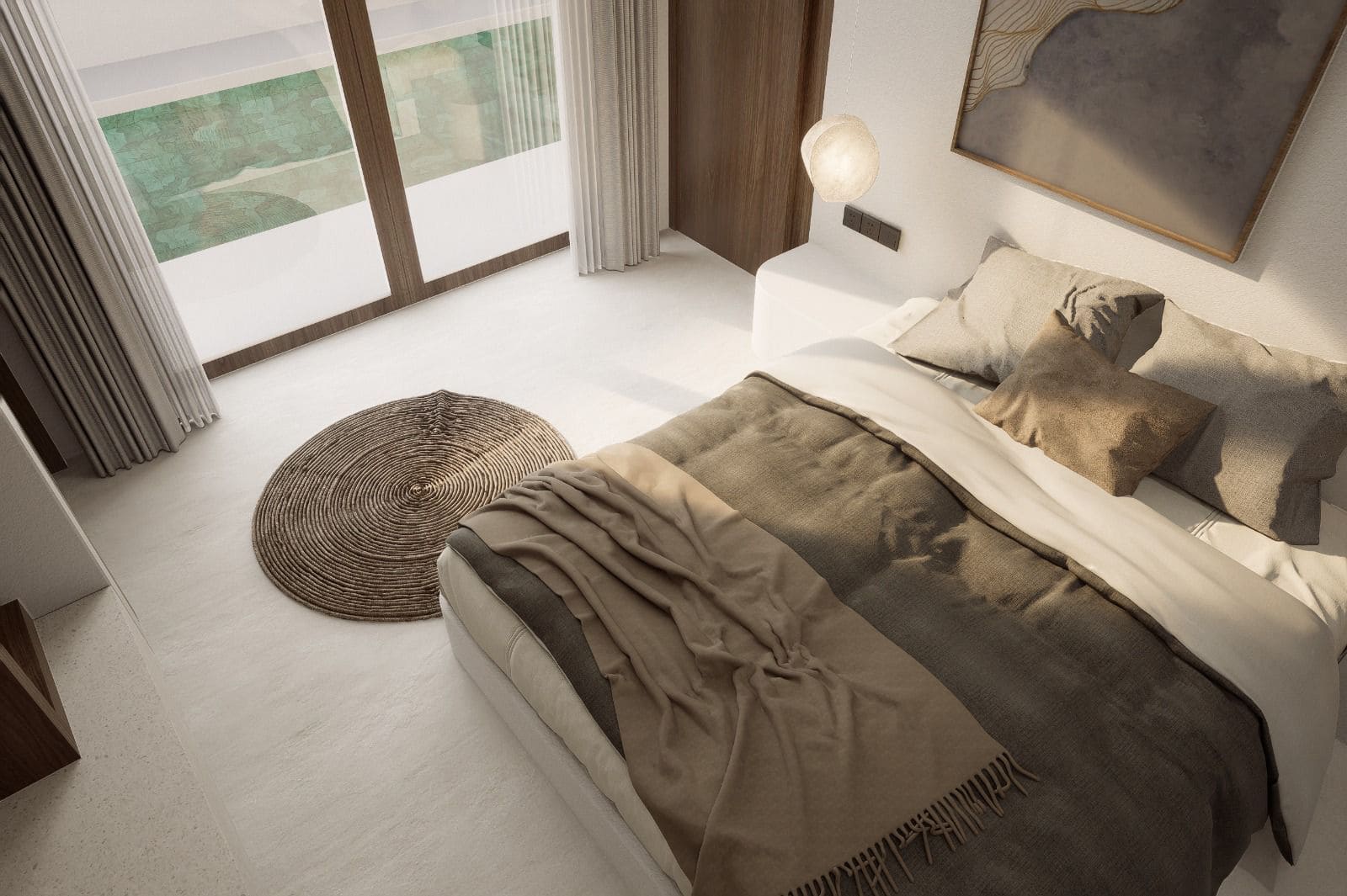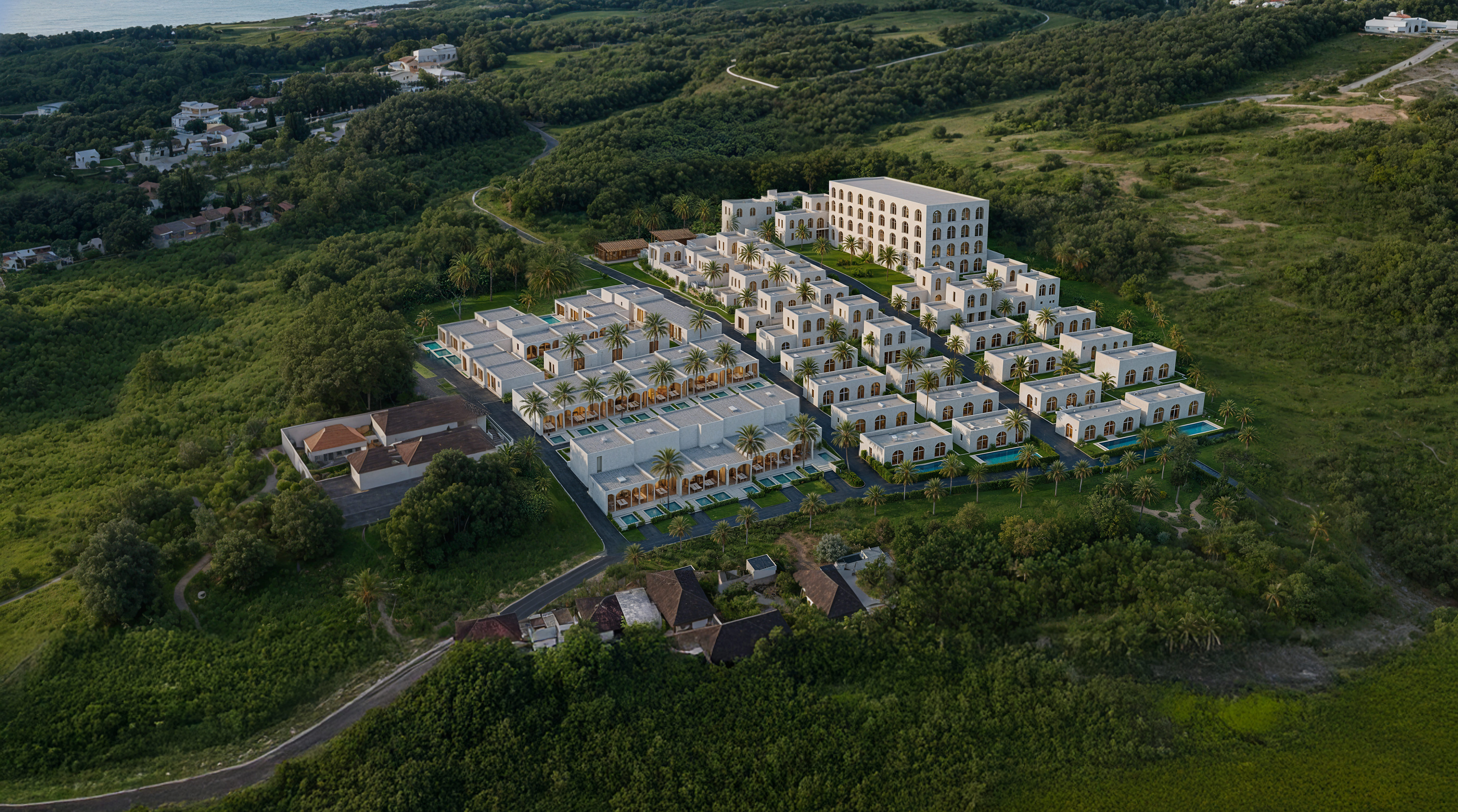 Расположение на возвышенности открывает широкие виды на океан до 270°. Закаты, горизонт и тропические пейзажи видны прямо с руфтопов резиденций.