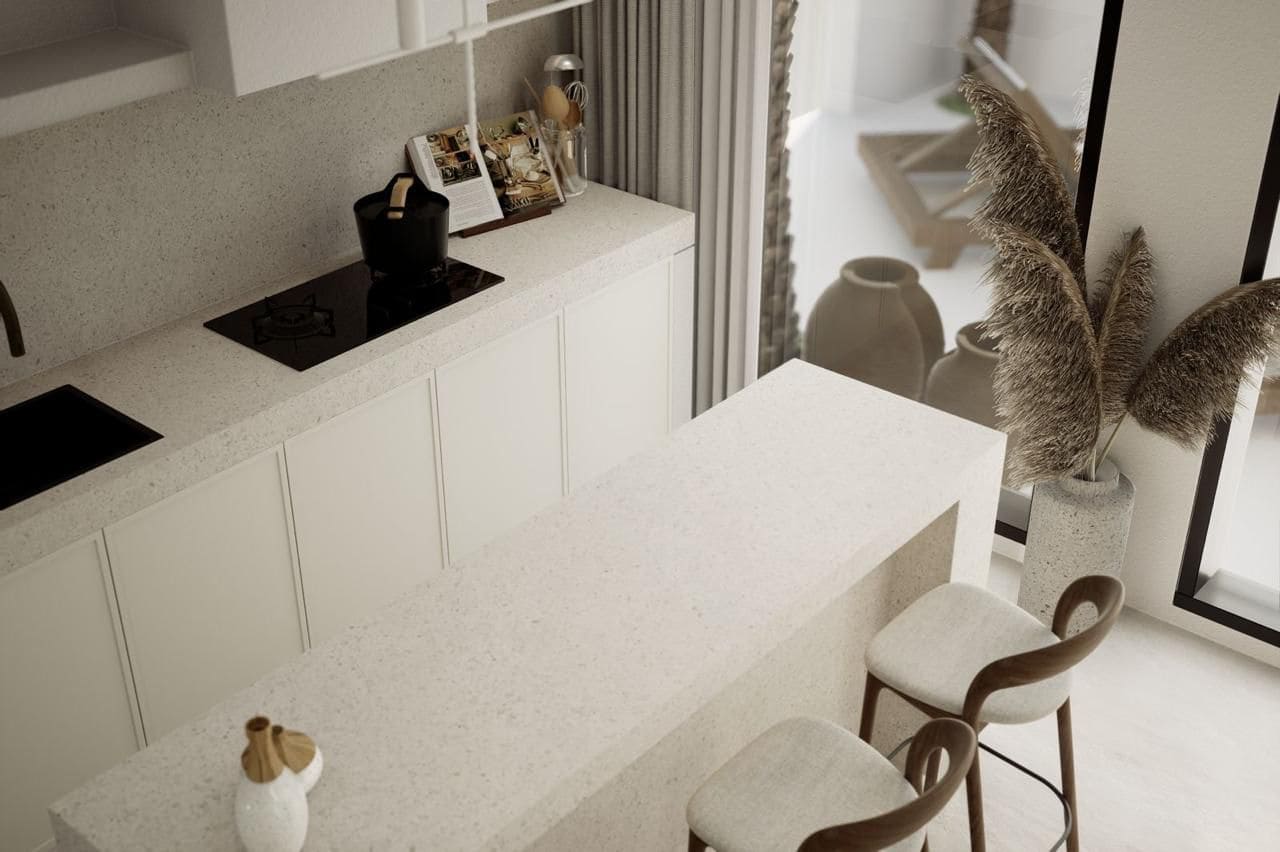 Белоснежные резиденции на возвышенности Нуса-Дуа, где утончённая греческая архитектура сливается с тропическим ландшафтом Бали. Каждая вилла располагает собственным участком и руфтопом с панорамными видами на океан, джунгли и закаты, достойные балийского Олимпа. Проект возводится в престижной «розовой» туристической зоне с гарантией до 25 лет и завершением в 2027 году.